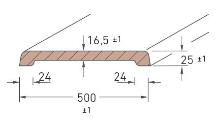 Підвіконня мають висоту капіноса 25 мм і стандартну довжину 5,6 м. В якості стандарту вони доступні шириною від 100 до 500 мм з кроком 50 мм.
