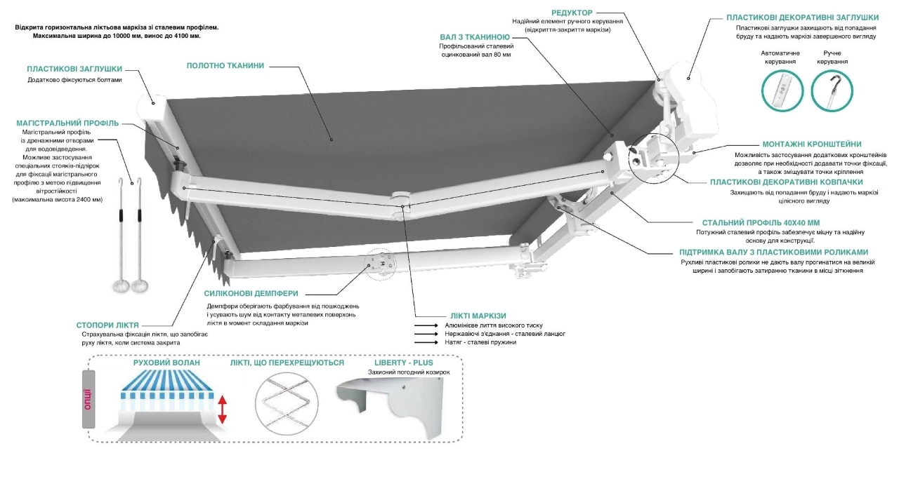 Конструкція та механіка касетної маркізи