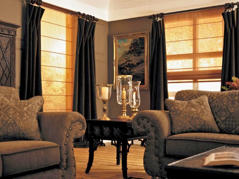 - Цей тип штор виготовляється з тканини, що має високу щільність та здатність блокувати світло.