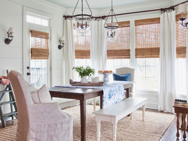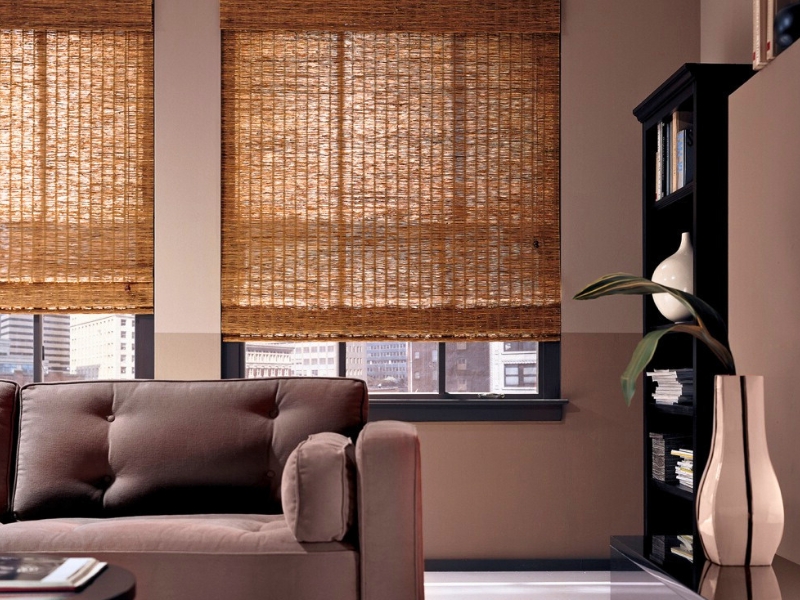 - Римські штори з бамбука або соломи створюють екзотичний та природний вигляд. Вони можуть бути використані для створення еко-дизайну.